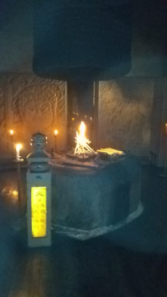 その後、「本堂」での納札、さらに楠供養、護摩体験。