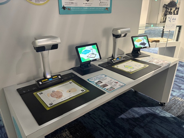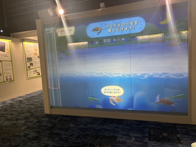 カレッタ館長さんによるウミガメのお話を聞いた後はグループに分かれて、ウミガメを実際に見たり、ウミガメの歴史を知ったり、ウミガメの一生を見届けました。自分のカメさんは生き残れたかな?