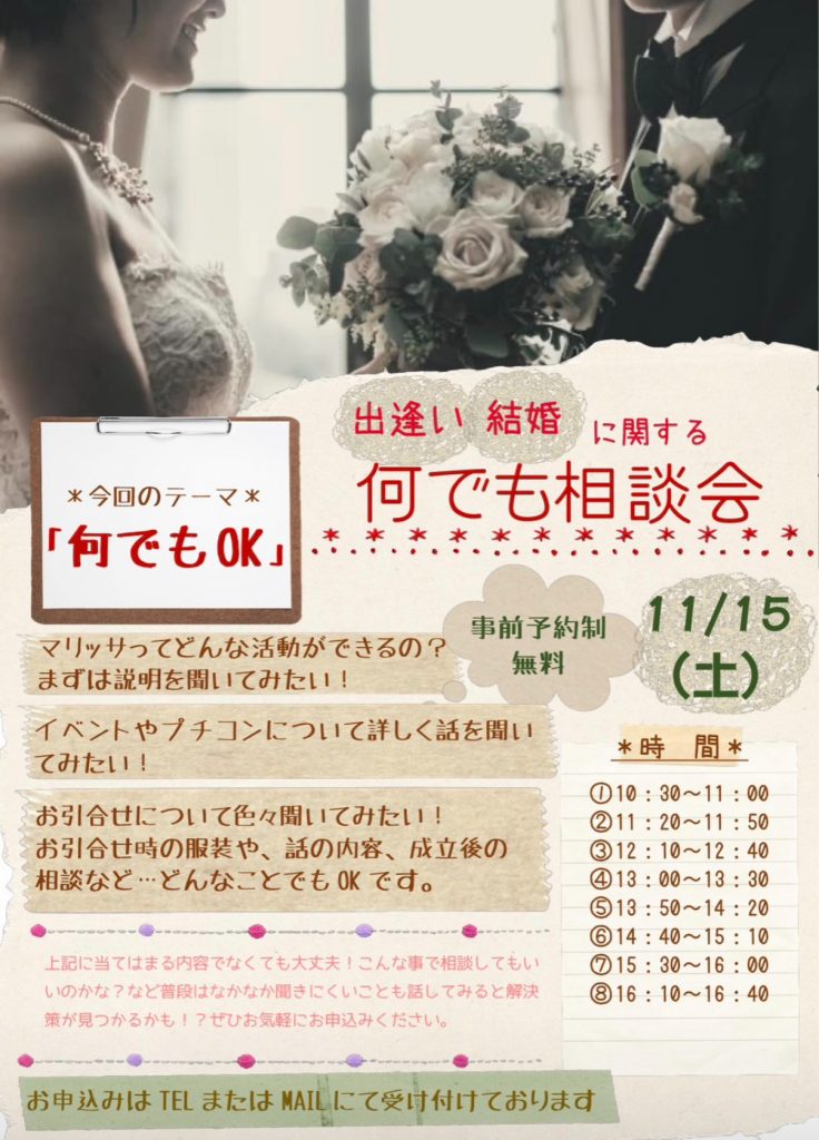 マリッサとくしま「出逢い」「結婚」に関する何でも相談会を開催します!
